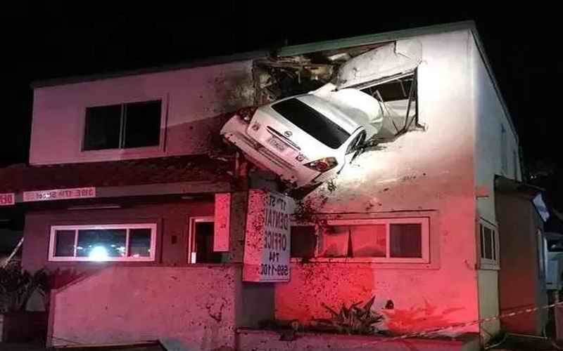 Automobil nisan altima uleteo je, u nedelju uveče, u zubarsku ordinaciju u Santa Ani u Kaliforniji.