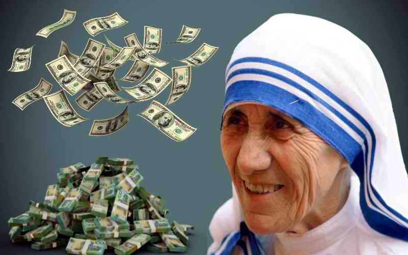 Ipak, ono što je pratilo misonarski rad Majke Tereze je i globalno prikupljanje novca za nemoćne, siromašne i bolesne. Zna se da je Majka Tereza primila donacije koje se mere destinama miliona dolara. Zna se i da je sav novac završavao na računima vatikanskih banaka ali ni jednom oditoru nije nikada dozvoljeno da ove račune pregleda? Navodno, Majka Tereza to nije dozvoljavala. Valjda je to smatrala bogohuljenjem ili nešto slično. Svejedno, niko ne zna kako je novac trošen. Iako se tim novcem moglo izgraditi mnogo sirotišta sa adekvatnim sanitarijama i verovatno više vrhunski opremljenih bolnica u Bengalu, nije izgradjena niti jedna.