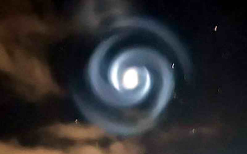Spiralni oblak gasa koji je uveče obasjao nebo iznad grada Nelsona bio je vidljiv na 750 km. Stručnjaci sugeriraju da je to najvjerovatnije posljedica projekta SpaceX koji je samo nekoliko sati ranije lansirao raketu Falcon 9 sa satelitom Globalstar DM15.