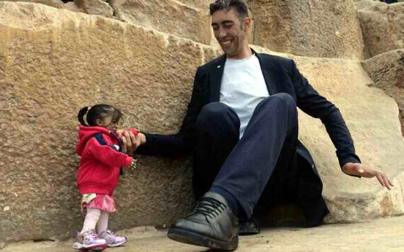 Kosen, visok neverovatnih 251 centimetar, stao je pokraj Amge koja meri tek 60 centimetara ispred piramida u Gizi, te su snimili zajedničku fotografiju.